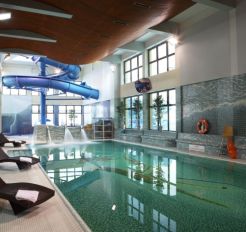 Oferta zawiera: nocleg w stylowo urządzonym pokoju śniadanie w restauracji hotelowej Nieograniczony wstęp do jedynego w regionie aquaparku: rekreacyjny basen z kaskadami i...